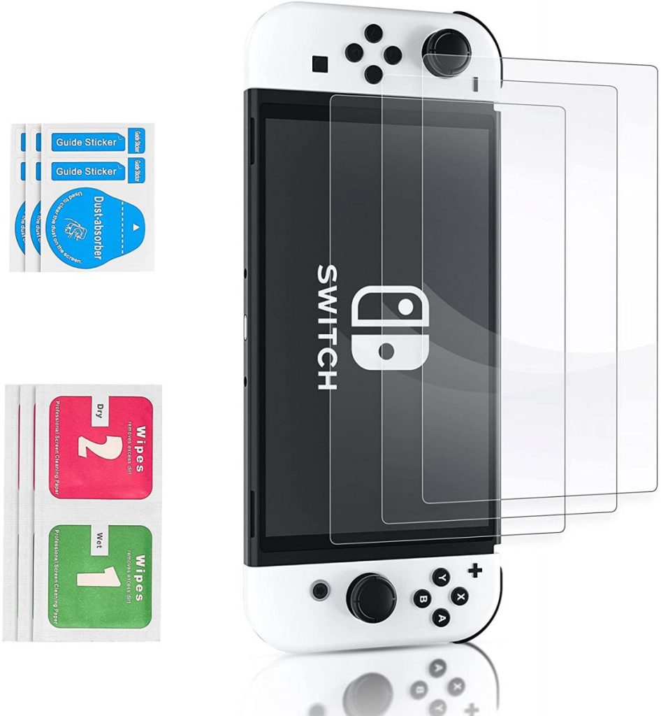 - Miếng dán màn hình cường lực cao cấp: thiết kế đặc biệt và vừa vặn dành riêng cho Nintendo Switch OLED
