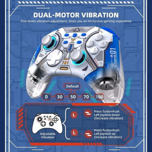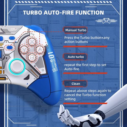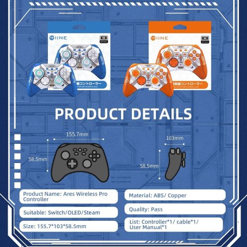 Một chiếc tay cầm độc đáo đến từ hãng IINE. Phủ trên bề mặt của tay cầm là một phần nhựa bóng đẹp mắt và xen kẻ với các đèn Led có thể thay đổi nhiều màu khác nhau. Tay nổi bật lên với phong cách thiết kế của máy móc và robot đem lại cảm giác thích thú khi chiến game trên chiếc Switch của bạn. Ngoài ra tay còn có thể kết nối với đa hệ máy như PC, Android, IOS, Steamdeck.v.v…